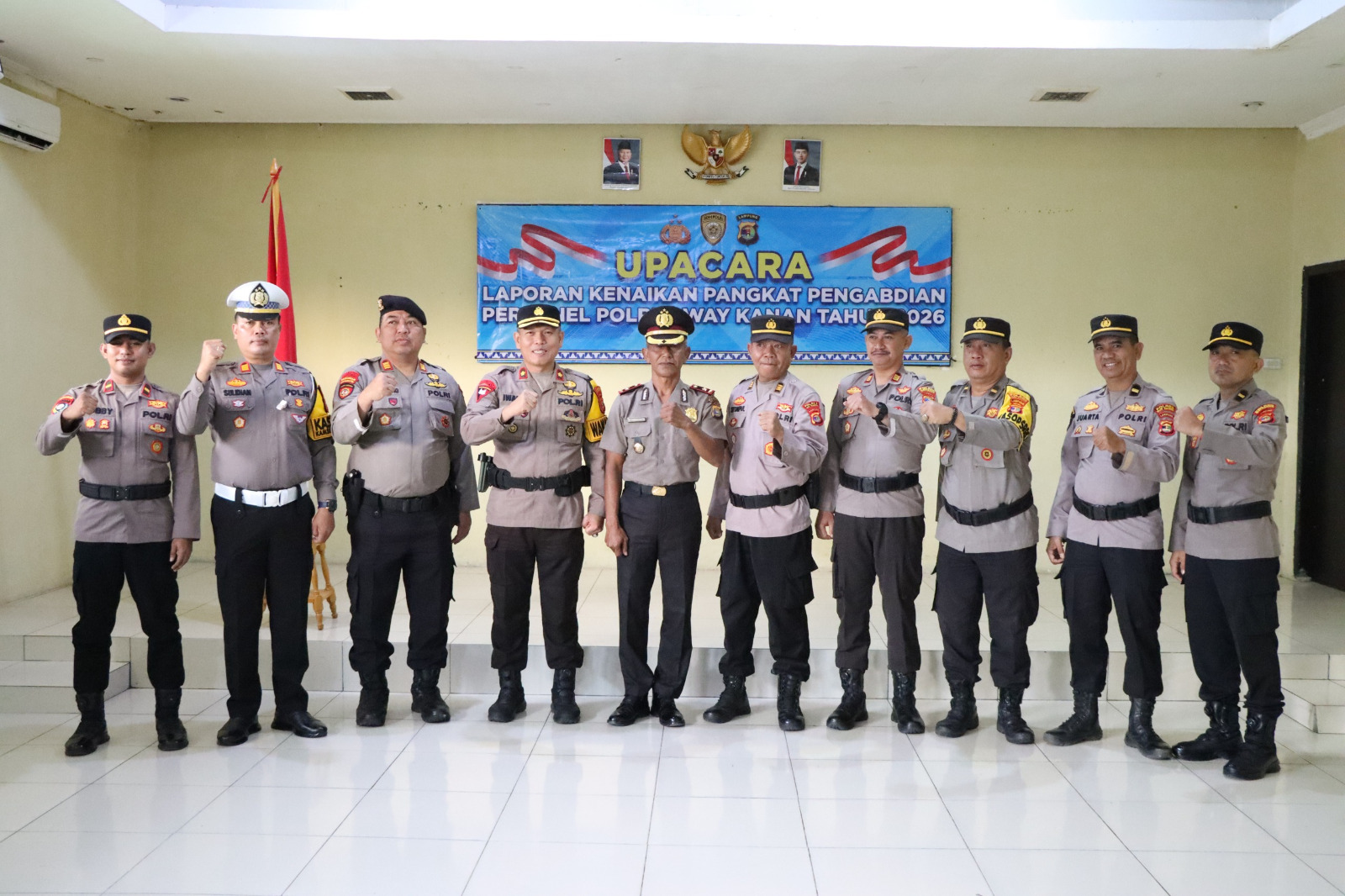 Polres Way Kanan menggelar upacara laporan kenaikan pangkat pengabdian dari Ajun Komisaris Polisi menjadi Komisaris Polisi yang dilaksanakan di Aula Adhi Pradana Polres Way Kanan. Selasa (03/02/2026).