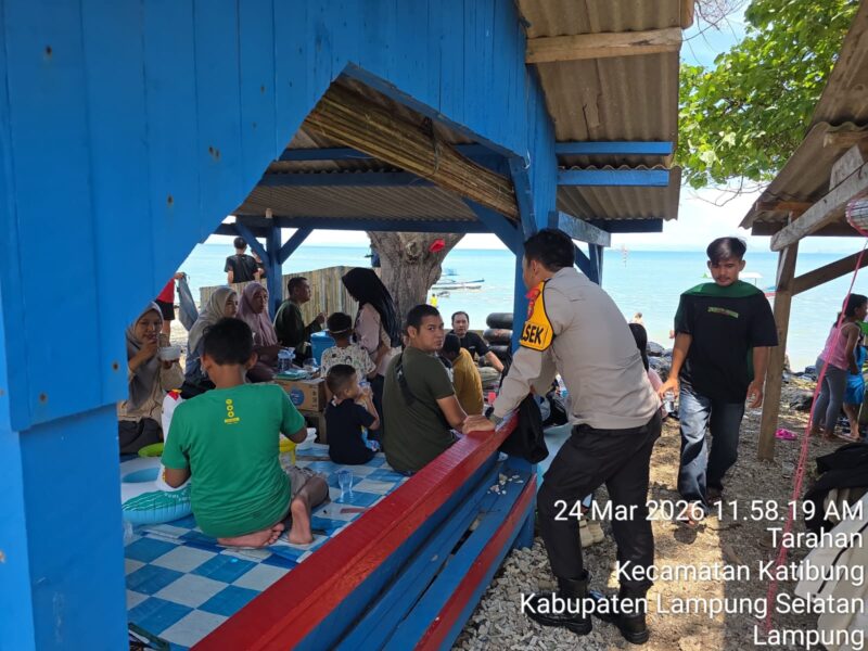 Lampung Selatan,Buktipetunjuk.id Guna menjaga situasi keamanan dan ketertiban masyarakat (kamtibmas) tetap kondusif, jajaran Polsek Katibung melaksanakan patroli sambang dialogis di kawasan wisata THR Tanjung Selaki, Desa Tarahan, Kecamatan Katibung, Kabupaten Lampung Selatan, Selasa (24/3/2026).