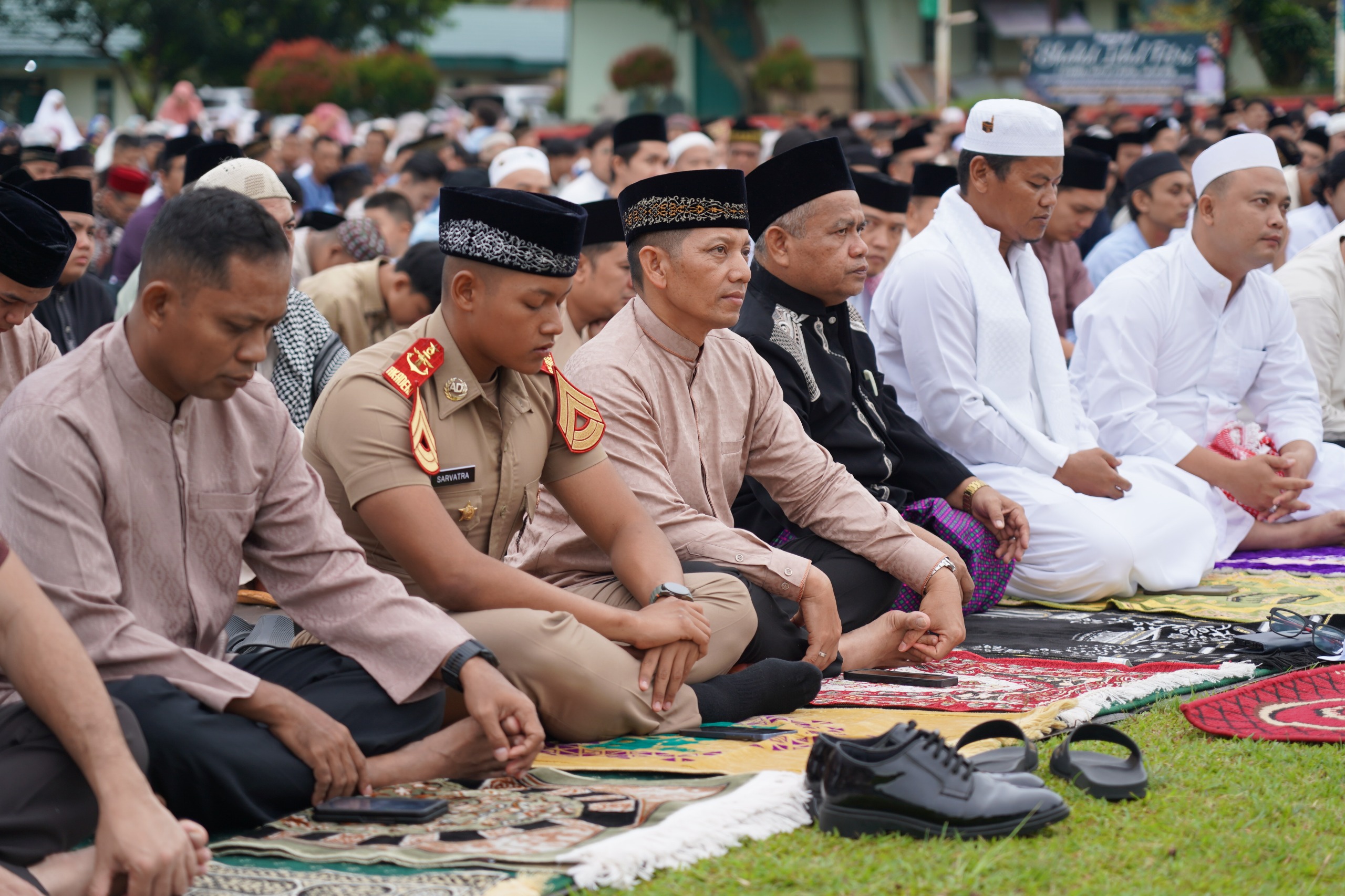 “Alhamdulillah kita bisa kembali bertemu dengan hari kemenangan, di Hari Raya Idul Fitri 1 Syawal 1447 H, yang mana selama satu bulan lamanya kita harus berjuang menahan segala hawa nafsu baik lapar dan dahaga, untuk memperoleh kemenangan di hari yang fitri ini,” ujarnya.
