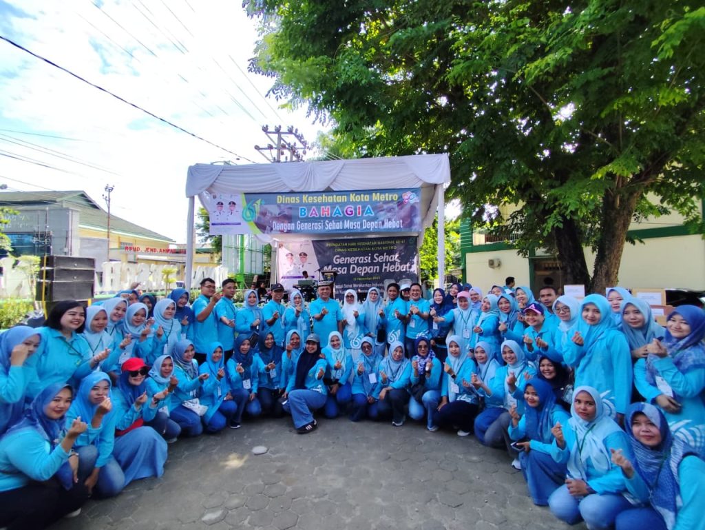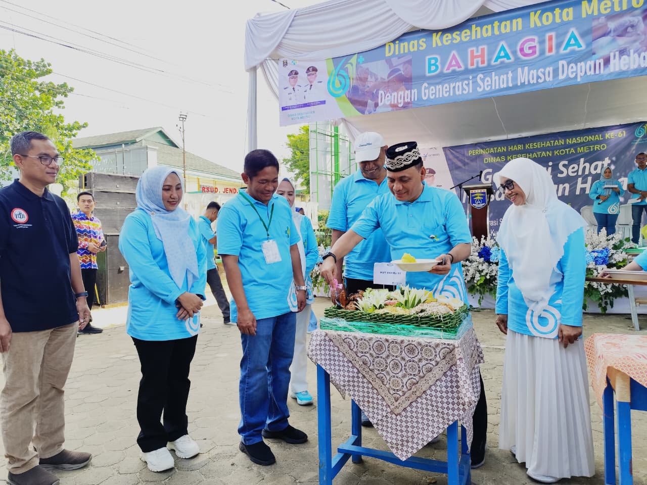 Metro Lampung,Buktipetunjuk.id —Puncak Peringatan Hari Kesehatan Nasional (HKN) ke-61 Tahun 2025 di Kota Metro digelar pada Jumat (21/11/2025) di halaman Kantor Dinas Kesehatan (Dinkes) Kota Metro, dengan tema “Generasi Sehat, Masa Depan Hebat”.
