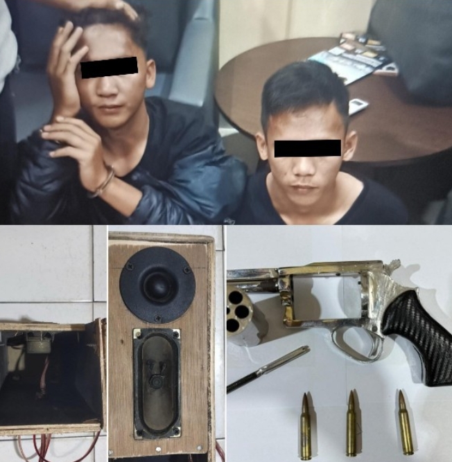 Tanpa menunggu lama, petugas segera menuju kontrakan yang dimaksud dan melakukan penggeledahan. Hasilnya, petugas menemukan 1 (satu) pucuk senjata api rakitan jenis revolver berikut 3 (tiga) butir amunisi aktif yang disembunyikan di dalam kotak salon speaker. Barang bukti tersebut kemudian diamankan bersama kedua pelaku untuk selanjutnya dibawa ke Mapolres Metro guna menjalani pemeriksaan lebih lanjut.