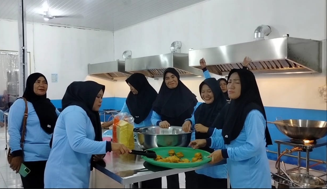 “Setiap pekerja memiliki tugas masing-masing, mulai dari memasak, menyiapkan bahan, hingga mencuci kotak makanan. Pekerjaan memasak, misalnya, dimulai sejak pukul 01.00 Wib hingga 16.00 Wib, sementara tim penyiapan bahan bekerja dari pukul 15.00 WIB hingga pukul 02.00 dini hari,” bebernya.