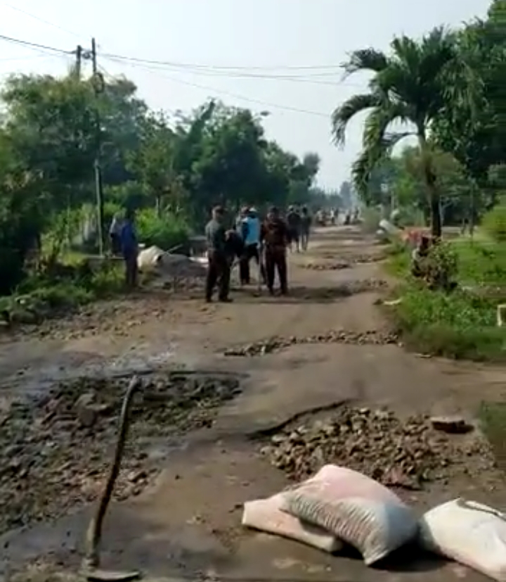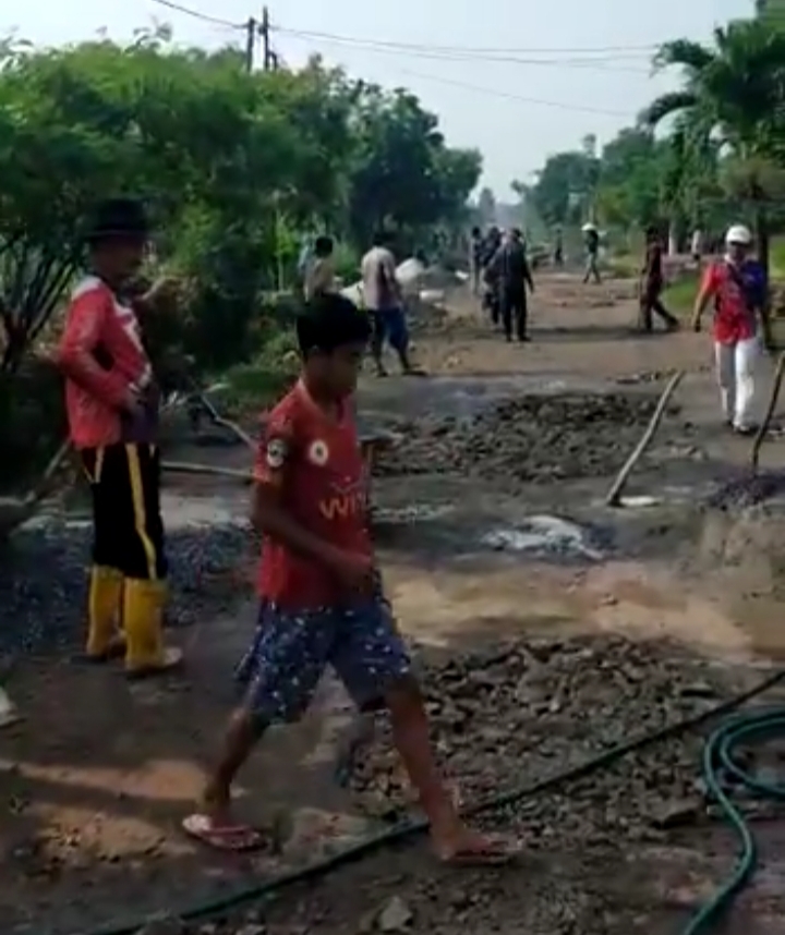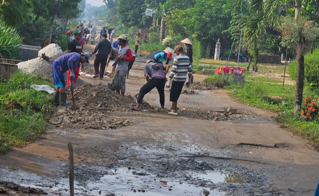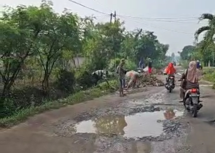 Gotong Royong Warga Qurnia Mataram Perbaiki Jln. Pendidikan Yang Rusak.