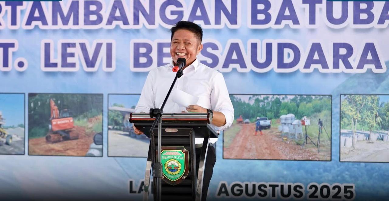 SUMSEL,Buktipetunjuk.id — Gubernur Sumatera Selatan (Sumsel), H. Herman Deru (HD) meresmikan dimulainya pembangunan jalan khusus angkutan batu bara di Desa Cempaka Wangi, Kecamatan Merapi Timur, Kabupaten Lahat, Sumatera Selatan, Senin (4/8/2025).