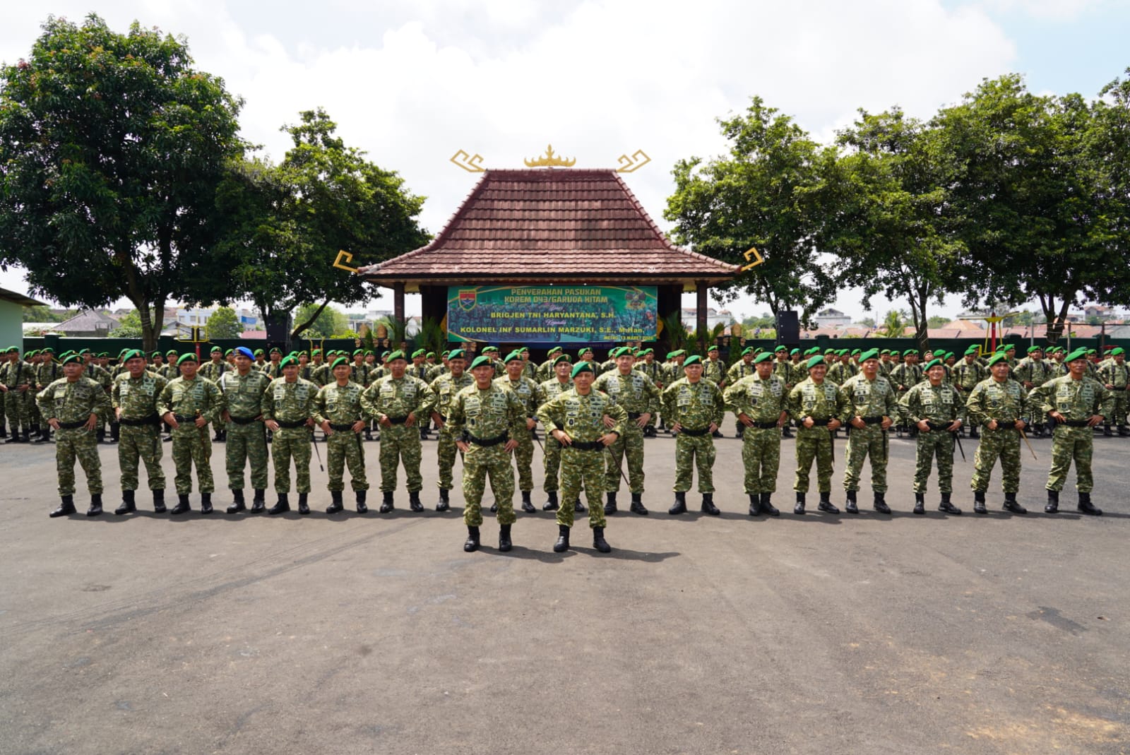 Dalam apel tersebut, Brigjen TNI Haryantana, S.H., secara resmi menyerahkan pasukan kepada Kolonel Inf Sumarlin Marzuki, S.E., M.Han., yang kini mengemban amanah sebagai Komandan Korem 043/Gatam yang baru.