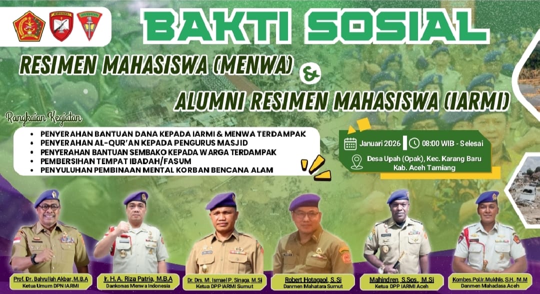 Bencana Sumatera yang melanda Tiga Provinsi (Aceh, Sumut dan Sumbar) Desember 2025 lalu, masih menelan duka oleh korban di lokasi tersebut. Hal ini yang mendasari Organisasi IARMI (Ikatan Alumni Resimen Mahasiswa Indonesia) dan Menwa (Resimen Mahasiswa) ikut ambil bagian memberikan kontribusi nyata kepada masyarakat korban bencana.