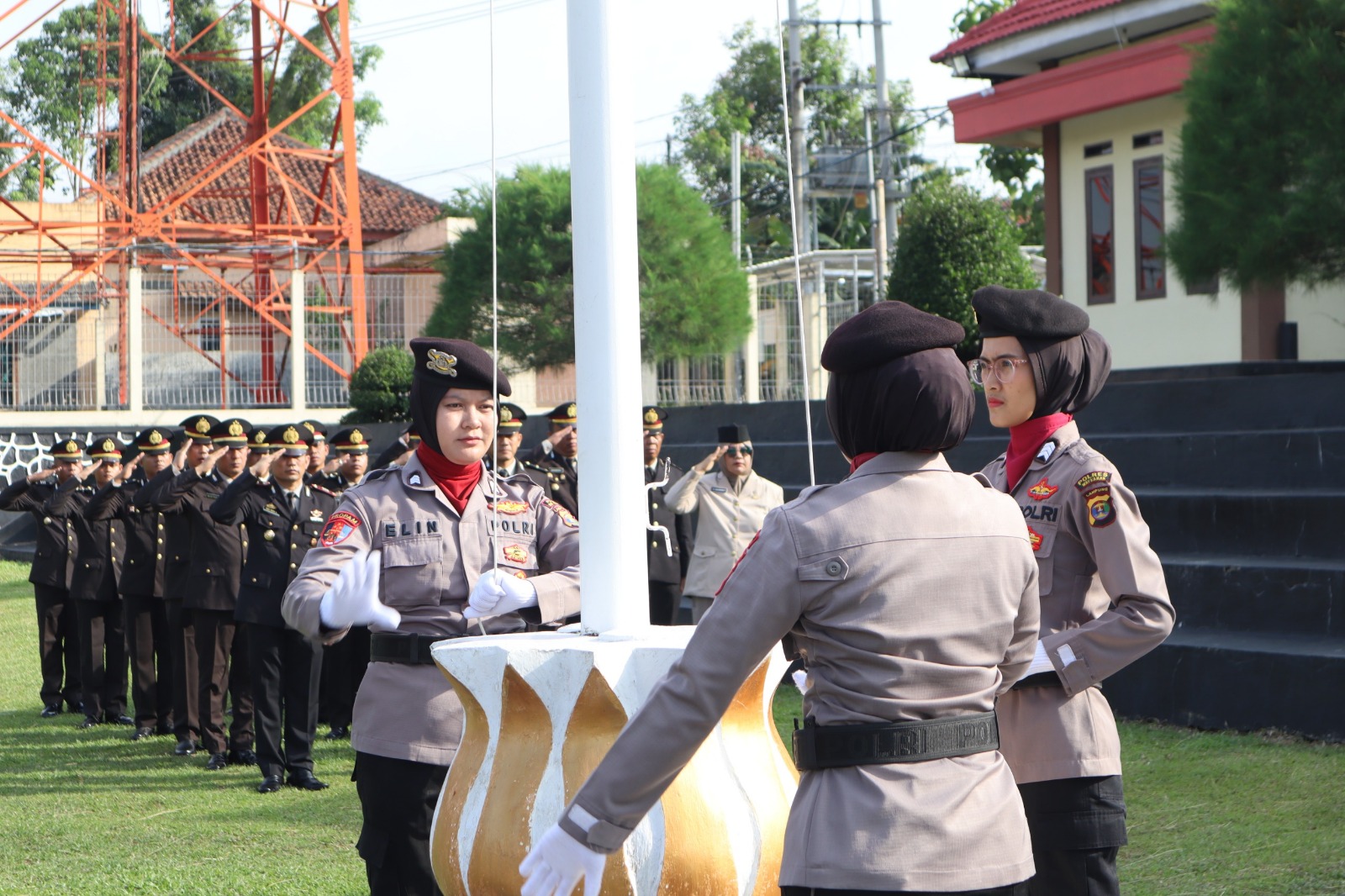 Komandan upacara dipercayakan kepada Bripka Sevi Ledidayana, sementara perwira upacara dijabat Aipda Kusnovi Wanjiarni. Kehadiran para Polwan sebagai penggerak utama upacara menjadi simbol kuat peran strategis perempuan di tubuh institusi Polri.