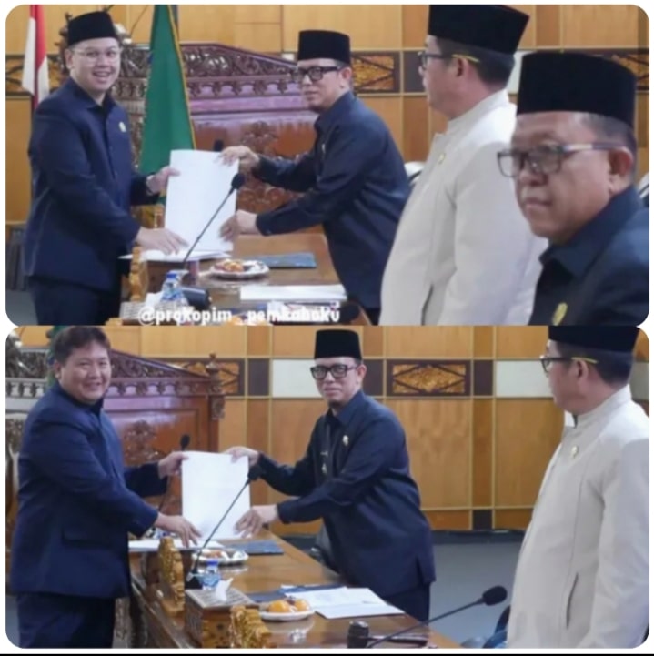 Adapun pengesahan 5 Raperda yang terdiri dari 4 Raperda inisiatif Pemkab OKU dan 1 Raperda Inisiatif DPRD OKU itu ditandai dengan penandatanganan oleh Bupati OKU H Teddy Meilwansyah bersama Wakil Ketua I DPRD OKU Rudi Hartono dalam Rapat Paripurna ke-XLVII DPRD OKU Masa Persidangan ke – 1 tahun 2025 dengan agenda Penyampaian Laporan Pendapat Akhir Fraksi DPRD OKU dan dilanjutkan penandatanganan keputusan bersama terkait pembahasan Raperda Kabupaten OKU Tahun 2025. Senin (20/10/2025).