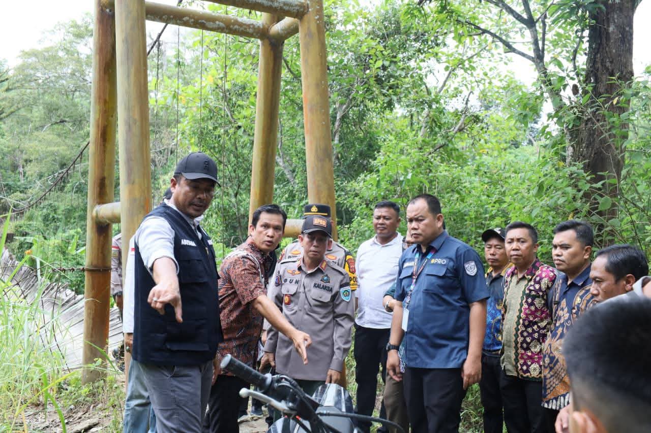 Respon cepat Bupati Ogan Komering Ulu Selatan (OKU Selatan), Abusama, S.H., meninjau langsung lokasi jembatan gantung putus penghubung Desa Campang Jaya, Kecamatan Kisam Ilir, dengan Desa Anugrah Kemu, Kecamatan Pulau Beringin, Kabupaten OKU Selatan Sumatera Selatan, Kamis (29/01/2026).