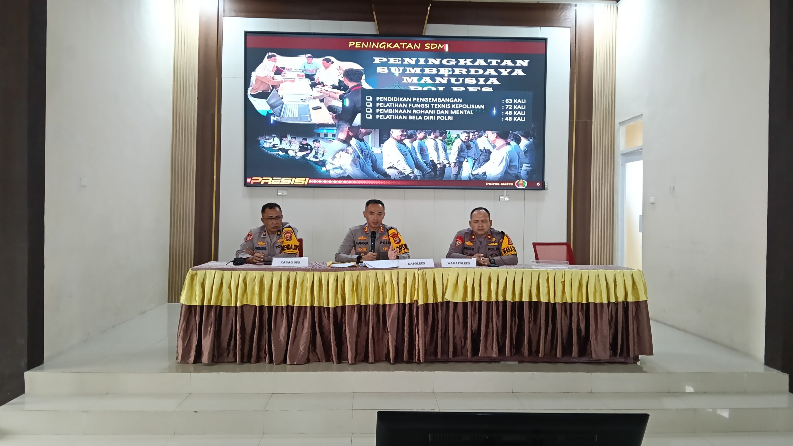 AKBP Hangga Utama Darmawan, S.I.K. menyampaikan bahwa dalam penegakan hukum, Satresnarkoba Polres Metro berhasil mengamankan sebanyak 179 orang penyalahguna narkotika. Sementara itu, Satreskrim Polres Metro berhasil menyelesaikan sebanyak 370 perkara tindak pidana umum selama tahun 2025.