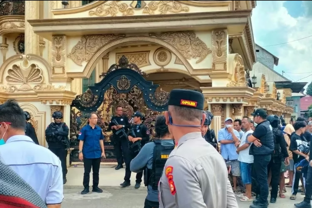 Sejumlah personel berjaga di depan gerbang rumah besar bercorak emas tersebut, sementara tim dari BNN pusat berada di dalam rumah melakukan penggeledahan secara menyeluruh.