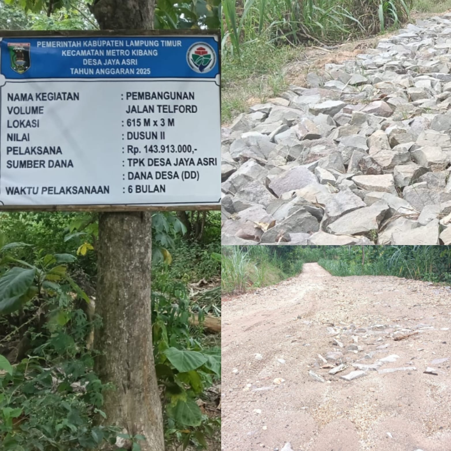 Pembangunan Telford dengan volume 615 X 3 Meter Jalan Onderlagh di Desa Jaya Asri menelan anggaran Rp 143.913.000 yang berlokasi di Dusun ll Desa Jaya Asri Kecamatan Metro Kibang kabupaten Lampung Timur. Terindikasi pembangunan jalan Onderlagh tersebut rawan penyimpangan.