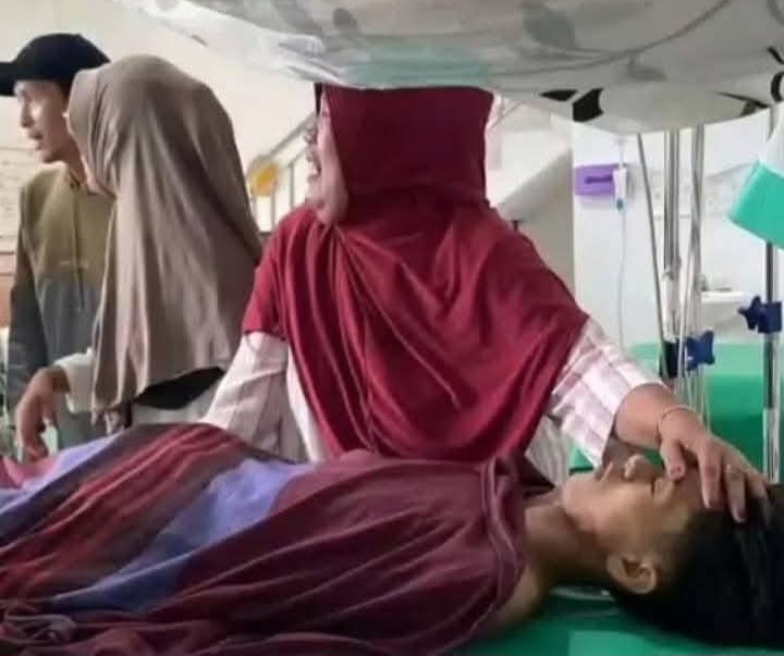 Kemudian, terduga pelaku menusuk korban dengan menggunakan Senjata Tajam (Sajam) sehingga korban berlari ke pinggir jalan. Pada saat itu, korban tergeletak di pinggir jalan raya seberang SDN Gunung Terang, lalu salah satu warga sekitar datang membawa sepeda motor dan membawa korban ke Puskesmas.