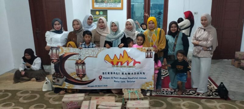 Dalam rangka berbagi berkah di bulan suci Ramadhan, Vios Limo Lampung Community (VLLC) menggelar kegiatan sosial dengan menyalurkan bantuan sembako ke Pondok Pesantren dan Panti Asuhan Raudlatul Jannah (Yayasan Swadhipa) yang berlokasi di Jalan Swadhipa, Desa Bumi Sari, Kecamatan Natar, Kabupaten Lampung Selatan, Minggu (07/03/2026).